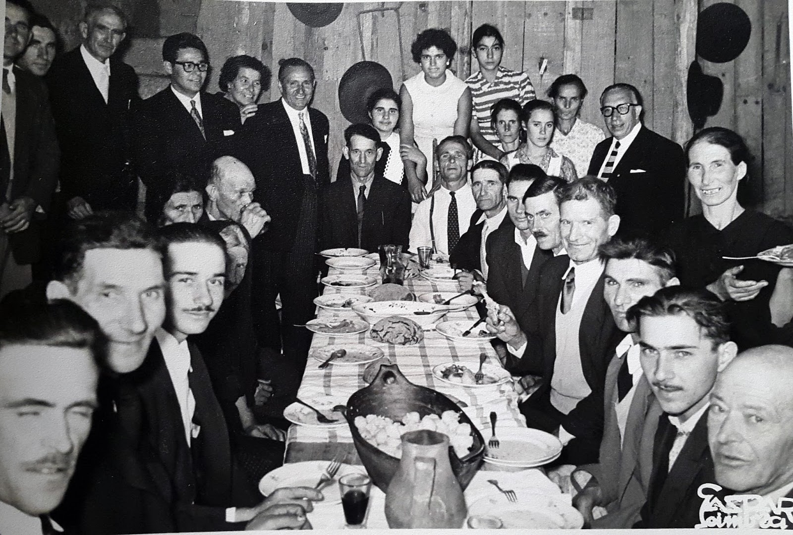 Duas fotos interessantes, que mostram uma parte da classe trabalhadora de Travanca, da déc. de 60. Era um dia de festa na Quinta/Casa do Sr. Silva Neto, pois casava-se uma filha, Mª Isabel Mendes Costa e Silva Mesquita, irmã da Dona Conceição Brito, da Quinta da Morrota.  Os empregados ou colaboradores da Casa foram convidados mas, como era hábito na altura, comiam numa ala à parte.É com saudade que relembro muitas destas pessoas, incluindo a minha querida avó, Maria dos Anjos Costa, conhecida por Maria Cerca, afamada cozinheira, que fez a boda do casamento. Muitas outras já não conheci. De qualquer forma, à exceção de 2 ou 3 pessoas, foram todas identificadas. Uma delícia...